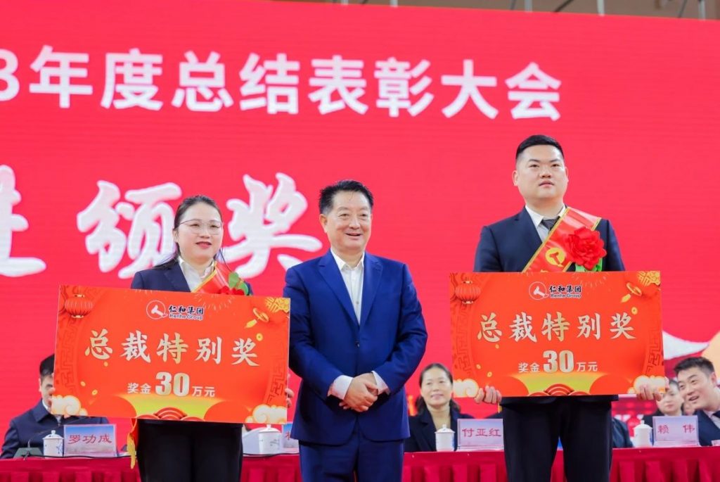 2024年2月19日上午,仁和在樟樹市體育館隆重召開2023年度總結表彰大會,樟樹市市委領導、董事會成員、各戰線營銷將士等員工代表3700余人出席會議,大會隆重宣布了《關于表彰2023年度先進集體、個人的決定》,中進藥業被評選為“先進集體”,公司總經理李圳被授予“總裁特別獎”榮譽。此殊榮展現了中進藥業緊跟公司發展步伐、創新創造,承擔更大責任與使命的精神風貌??偨浝砝钲讷@獎后進行了發言并表示,中進藥業絕不會沉醉在鮮花和掌聲中,而是以實際行動再造仁和中進鐵軍新輝煌,努力發揮先進集體的帶頭作用!