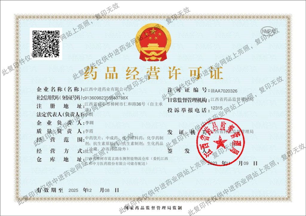藥品經(jīng)營(yíng)許可證 發(fā)布時(shí)間: 2023年03月01日 09:00:04 閱讀量: 有效時(shí)間:2025年12月08日 下一篇:第二類醫(yī)療器械經(jīng)營(yíng)備案憑證