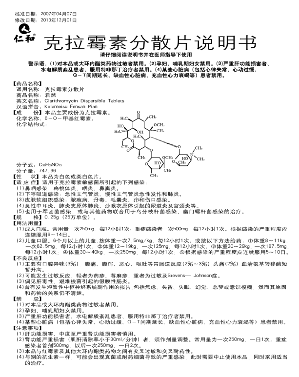 克拉霉素分散片