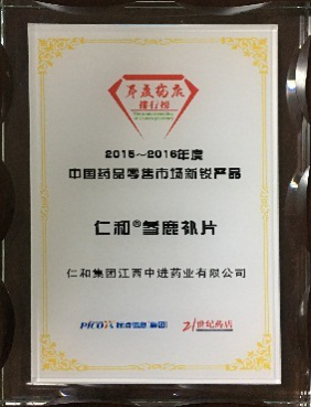 當前位置:網站首頁 公司簡介 企業榮譽 仁和參鹿補片榮獲“2015-2016年度中國藥品零售市場新銳產品”