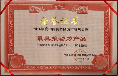 當前位置:網站首頁 公司簡介 企業榮譽 仁和參鹿補片榮獲2016年度中國醫藥區域市場風云榜“最具推動力產品”榮譽