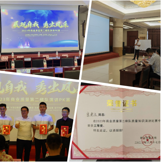 2023年8月17日下午,商業(yè)質(zhì)量中心在863仁和堂一樓會議室舉行了“展現(xiàn)自我 秀出風采”的演講比賽,參與此次PK賽的17位選手分別來自各商業(yè)子公司質(zhì)量部。大家在臺上分享了各自的工作經(jīng)驗、感想心得,讓我們受益良多。